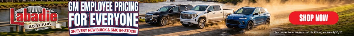 Labadie Buick GMC proudly offers 80 years of service excellence since 1946. We also deliver on-the-spot auto financing for our new GMC and Buick vehicles, and we support you down the road with courtesy transportation vehicles, roadside assistance, a full-service body shop on location and so much more. Every vehicle purchase also includes free lifetime car washes as a special bonus. Trust Labadie Buick GMC for new car specials and truck sales you won't find anywhere else.